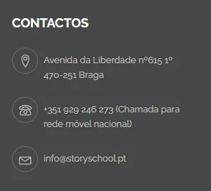 Os dados pessoais são apenas utilizados pela entidade Story School obedecendo e de acordo com os princípios do RGPD, existido o direito, à informação e apagamento entre outros consignados. Os dados pessoais são recolhidos para os efeitos necessários e é uso estrito de inscrição emissão de certificado e fatura válido pela Story School. É utilizado o formulário da Google Forms, uma ferramenta Office 365, cuja responsabilidade pela privacidade e pela não portabilidade é assegurada pela respetiva política de privacidade.